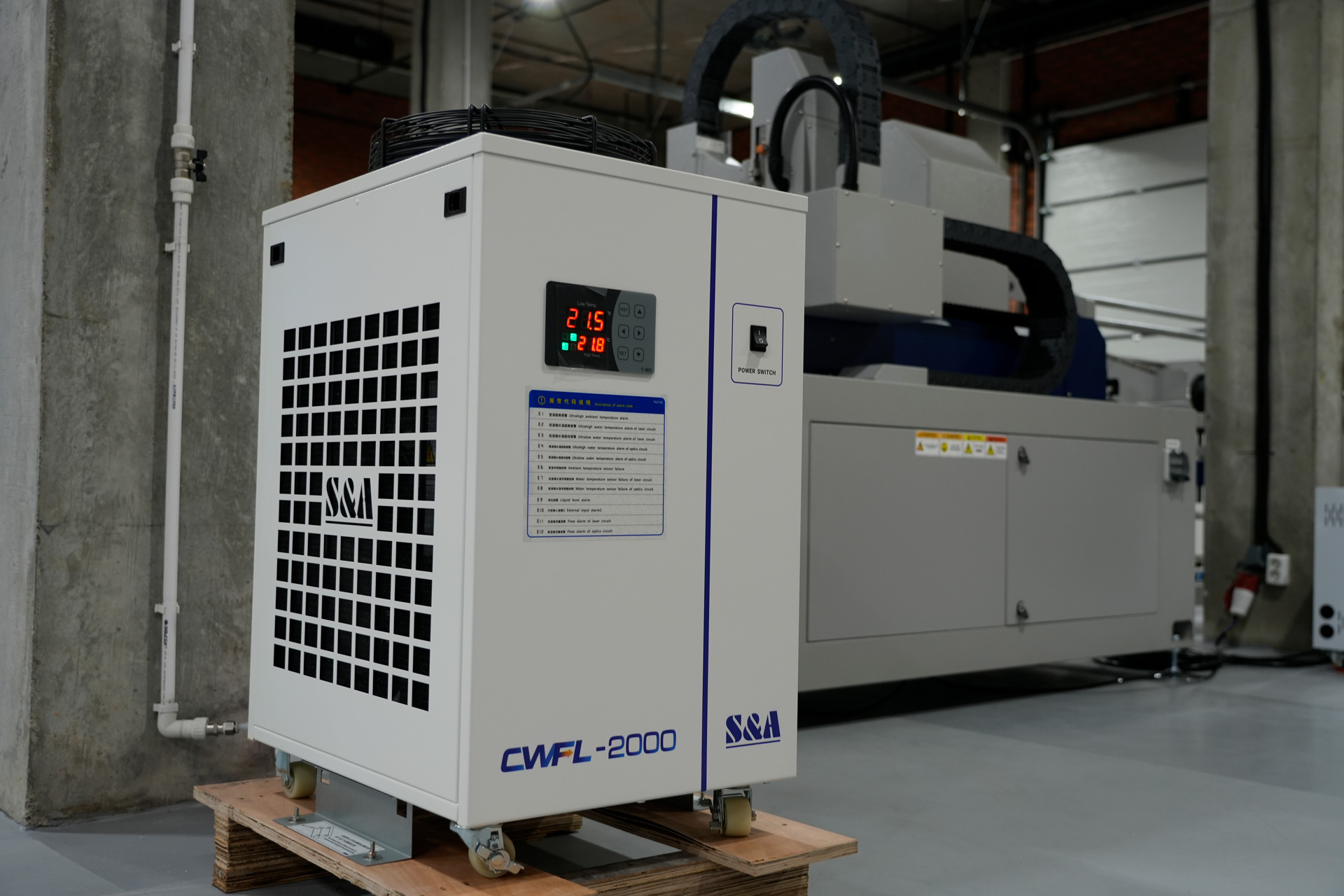 | Водяной чиллер S&A/Hanli Автоматический чиллер для охлаждения излучателей лазерных станков. Этот чиллер имеет большую мощность, что позволяет непрерывно охлаждать лазерную систему. Регулировка температуры осуществляется в автоматическом режиме. |
