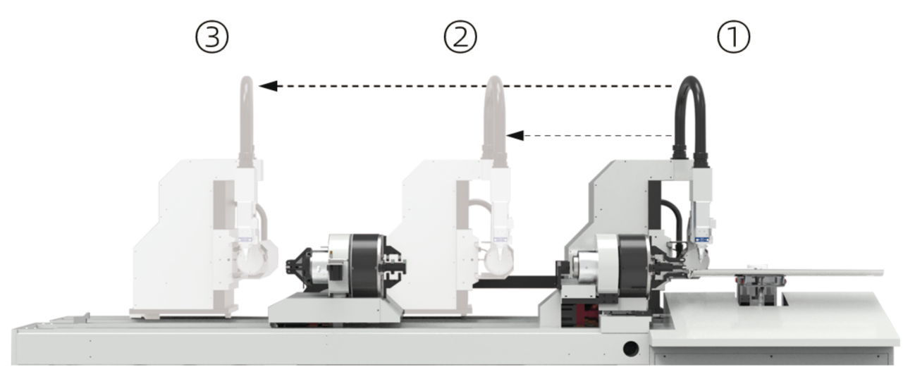 Лазерная голова способна быстро перемещаться между двумя патронами, предоставляя доступ к резке в 3-х различных участках заготовки, значительно расширяя возможности обработки. Резка под углом до 50° не только увеличивает площадь сварного шва, обеспечивая прочные и надёжные соединения, но и значительно упрощает стыковочные операции, что особенно важно для сварочных работ.