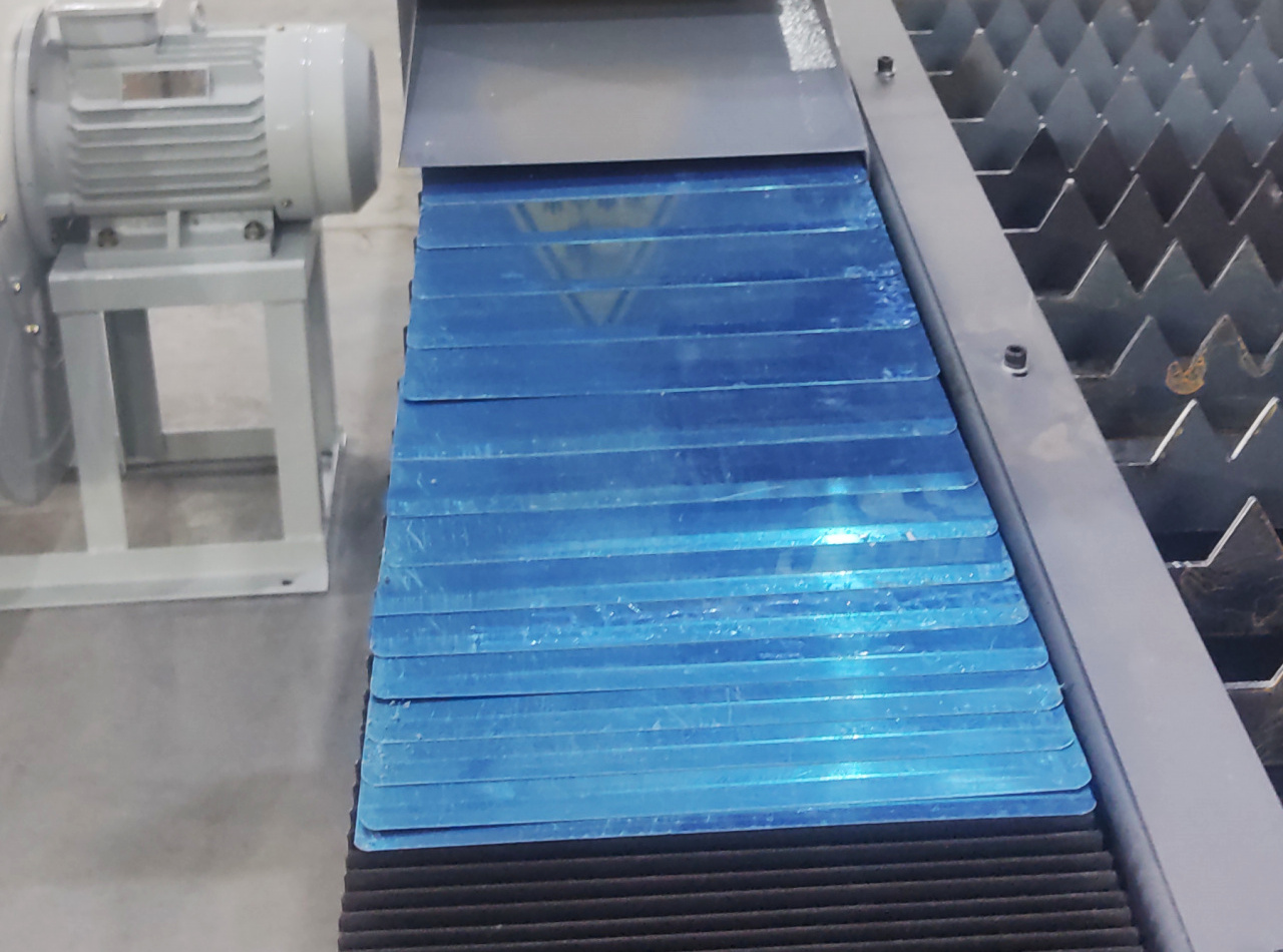 | Лист для защиты от искр Стальной лист толщиной 10 мм препятствует попаданию искр на рабочие механизмы станка в процессе лазерной резки. |