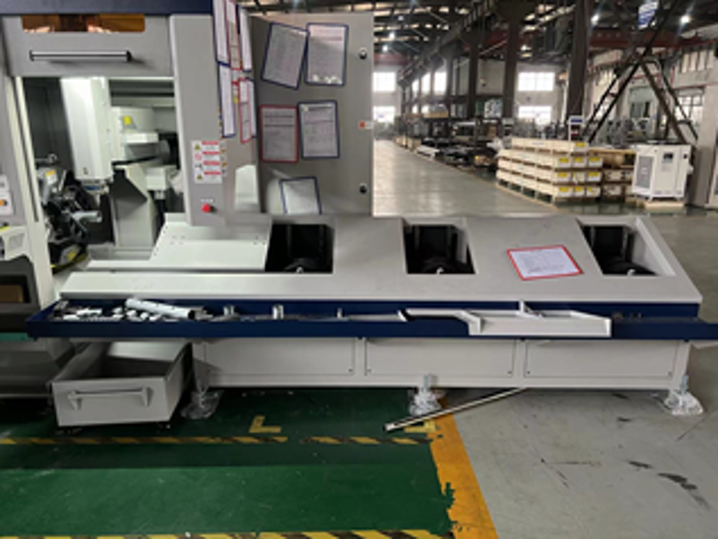 | Зона выгрузки Служит для безопасного извлечения обработанных деталей или материалов после завершения процесса резки. Помогает ускорить процесс обработки материалов, поскольку операторы могут быстро и удобно извлекать готовые трубы и немедленно начинать следующий цикл резки. Общая длинна зоны выгрузки составляет 1500 мм. |